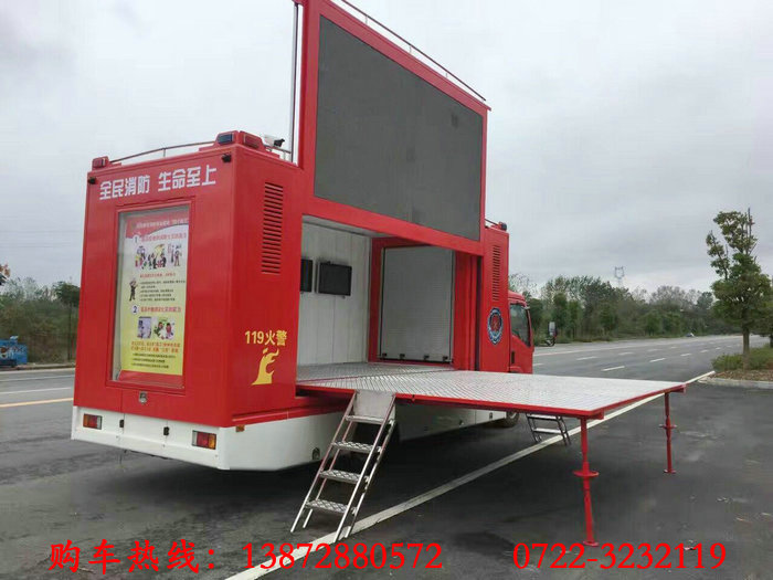全智能高科技多功能消防宣傳車,全自動(dòng)升降高清LED顯示屏,純進(jìn)口發(fā)電機(jī),內(nèi)設(shè)高配置電腦,可隨處辦公,內(nèi)設(shè)消防系統(tǒng),讓消防宣傳更生動(dòng),更直觀,更深入人心.