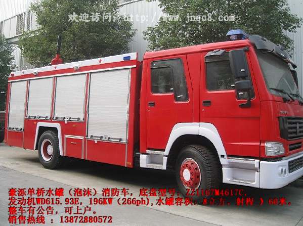 湖北江南專汽生產的城市主戰消防車是采用重汽豪沃底盤制造而成,該車配備美國赫爾MBP型消防泵和斯拉夫Suuffer9145DD型CAFS壓縮空氣泡沫系統(加拿大),可根據滅火實戰需要選擇噴射水、干泡沫、濕泡沫,混合比從0.1%—1%自動調節。