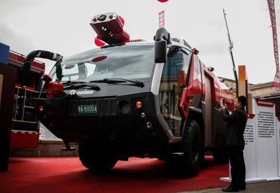 今年上海車展驚現高端消防車-美洲豹消防車,洲豹泡沫消防車由于車身尺寸是普通泡沫水罐消防車的近一倍之大,堪稱“巨無霸”,因此也最為吸引參觀者的眼球。這輛消防車進口于奧地利,是專門用于飛機的火災事故處理的,有起動快、操作方便靈活、功率大等特點。2007年7月,美洲豹消防車就在上海虹橋國際機場正式使用,此次是第一次亮相消防設備展。