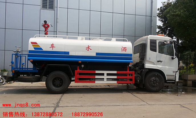 湖北江南專用特種汽車有限公司生產的東風天錦消防灑水車是一款集消防和灑水于一體的多功能消防車,罐體容積10立方,采用正規消防泵CB10/30,正規消防炮PS30,且采用夾心取力器,可實現行進中滅火,水射程達60米以上,該款消防車可用于森林消防車、園林綠化、園區消防、消防灑水、消防滅火、礦山降塵、生活小區滅火、電廠消防。