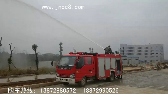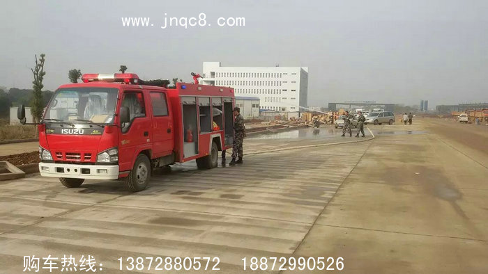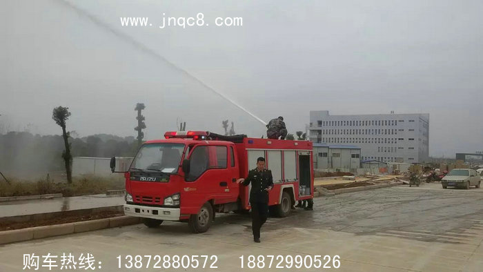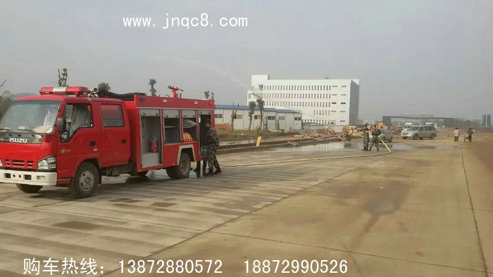 武漢物流園定購的湖北江南消防車廠慶鈴3.5噸水罐消防車收車過程:
