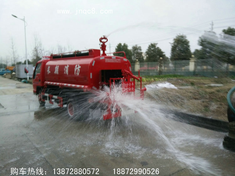 1,消防車功能:該車安裝了后置式消防泵,工作壓力在1.0 Mpa,在發(fā)生為災(zāi)時啟動消防泵,關(guān)閉灑水功能閥門,操作消防炮,射程達(dá)45米以上,消防炮流量大,射程遠(yuǎn),即可滅火。