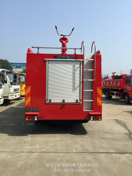 慶鈴5噸泡沫消防車采用CB10/40型消防泵,PL32型兩用消防炮,水射程達55米以上,泡沫射程達45米以上。