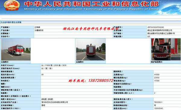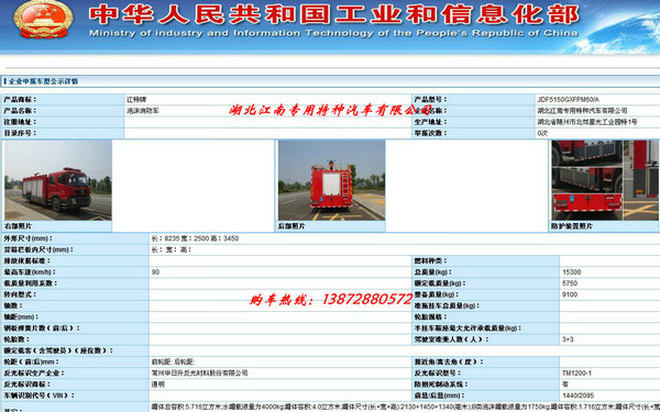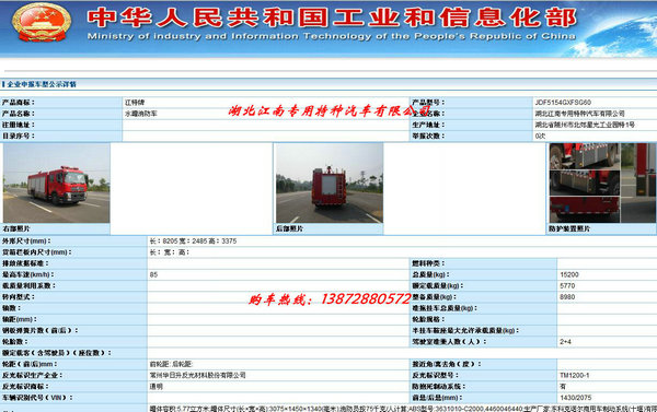 本公司湖北江南專用特種汽車有限公司293批國五消防車公告公示中,此次下發的國五消防車型有25噸水罐消防車、東風天錦6噸水罐消防車和東風天錦6噸泡沫消防車。更多國五消防車咨詢購車熱線:13872880572