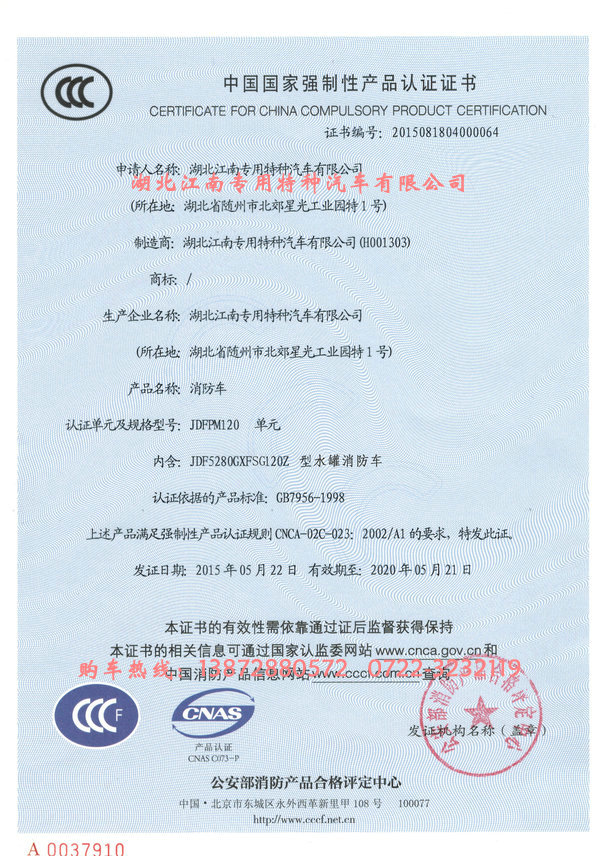 以下是湖北江南消防車總廠實(shí)力證實(shí):
