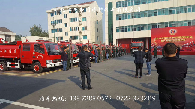 11輛5立方多功能消防車在澧縣交車,該車由東風多利卡底盤制造而成,雙排座,水罐容積5立方,采用CB10/30型消防泵,PS30W型消防炮,加裝前沖后灑側噴,該車一車多用,即可消防同時又可綠化灑水,購車熱線:13872880572