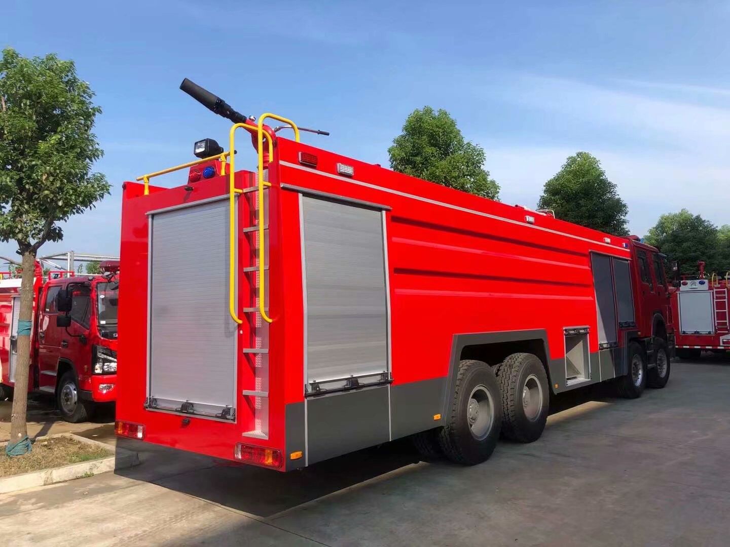 豪沃前四后八泡沫干粉聯用消防車完工,16立方水罐,2立方泡沫罐,1立方干粉罐,雄真80消防泵,消防水炮射程90米,干粉炮射程35米,廠家咨詢電話13972993119 13872880572