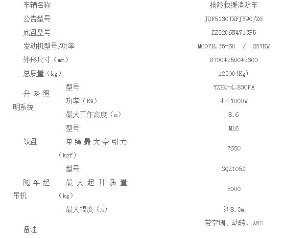JDF5130TXFJY90/Z6 搶險救援消防車產品,廣泛適用于消防救援、交通路政、工礦企業等單位緊急救援、搶險救災、交通事故施救、安全生產事故應急處突等。整車主要由機動性能較高的特種作業車底盤、鋁合金上裝廂體、電源保障系統、隨車起重折臂吊機、高桿照明系統、車載電臺、器材艙、平式/立式拓展板機構、卷簾門、梯臺及護欄、警燈警號、隨車器材等組成。上裝廂體為整體式框架結構,廂體龍骨采用優質鋁型材焊接,廂體四壁和頂板外蒙皮為航空鋁材,廂體兩側上部外廓采用專用鋁型材包角,滿足輕量化和整車強度要求。車輛頂部四周配備頻閃警燈及場地照明燈,下裙邊設計有翻轉踏板,尾部設計有專用雜物艙。整車優質烤漆工藝,主色為消防紅,可以根據用戶需求設計軍警制式外觀車貼。
