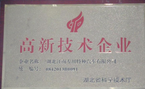 湖北江南專(zhuān)汽公司主要發(fā)展消防車(chē)高空作業(yè)車(chē)清障車(chē)這三大車(chē)型,通過(guò)全體員工的努力,在2011年6月15日榮獲“高新技術(shù)企業(yè)”證書(shū),證書(shū)編號(hào)為0842013B0091。此項(xiàng)證書(shū)是消防車(chē)清障車(chē)高空作業(yè)車(chē)技術(shù)部的不懈努力,積極創(chuàng)新,努力研究新車(chē)型而取得的好的認(rèn)可。