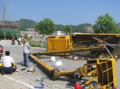 2011年6月30日下午兩點,一臺經私人改裝的高空作業車在使用當中突然倒地,引發重大故障。記者在開發區二大街銀座大廈附近看到,兩名既不穿工作服、又不綁安全帶的施工工人,站在一個粗糙鐵籃里被“升空”到五六層樓高度,而另一名工人則坐在吊車懸臂塔里邊抽煙邊操縱著懸臂上下。記者看到,該吊車的懸臂和載人鐵籃靠焊接在懸臂上兩個大鐵鉤連接,鐵籃上還有兩根拇指粗的鋼纜與懸臂固定。吊車的吊臂和吊籃搖搖晃晃,如果發生傾倒或者跌落,不僅危及操作工人,也會殃及現場路過的行人。不少進出該寫字樓的工作人員紛紛加快了腳步。