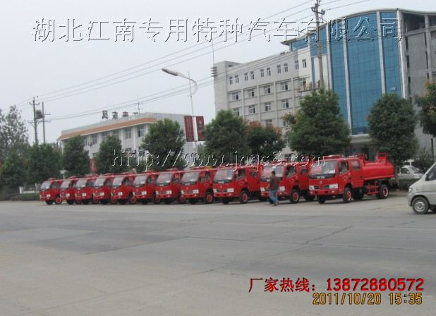 消防車|消防灑水車廠家董經(jīng)理報道:2011年10月31日,經(jīng)東莞市消防器材總局定購的11輛消防灑水車今日下線。該小霸王消防灑水車底盤是采用東風小霸王雙排座,朝柴95萬能力發(fā)動機,上裝部分由消防泵,消防炮,消防器材改裝而成。該消防灑水車既有灑水車的功能,同時具備消防救火功能,一舉兩得。11輛消防灑水車整裝待發(fā),隨時準備發(fā)往客戶所在地。