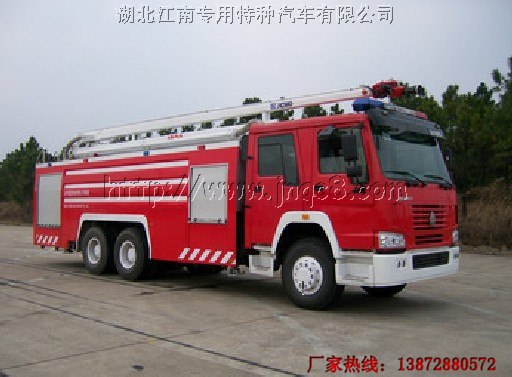 消防車|消防車廠家|舉高消防車|江南消防車|江南專汽報道:湖北江南專汽消防車技術人員張濤為您講解20米舉高噴射消防車性能及參數。20米高噴消防車是采用ZZ1257N4647C底盤改裝而成,WD615.95E發動機,罐體總容積為11.27立方米,水罐容積:9.5立方米,泡沫罐容積:1.77立方米, 該車是集水罐車、泡沫車、高噴射消防車于一體的多功能消防戰車,該車總質量為28450kg,外型尺寸10770mm×2496mm×3600mm,最高時速可達90km/h,車駕駛室內可乘坐6人名官兵。該車所選發動機的凈功率為245kw,可同時承載10噸水、2噸泡沫滅火劑,額定流量60l/s射程不小于60m.整車設置了必要的安全保護裝置,保證了操作安全可靠。該消防車具有動力性能好、滅火劑容量大、消防性能可靠、滅火效果佳、使用維修方便等特點,適用于城鎮、工礦企業等底層建筑以及石油化工企業、油罐、倉庫等建筑物的火災撲救。