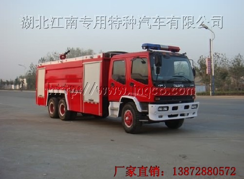 江特牌JDF5240GXFPM110W型泡沫消防車是采用五十鈴CXA34T底盤加裝上裝而成,采用五十鈴6HK1-TC發動機。五十鈴雙橋消防車罐體容積12-15立方,上海CB60消防泵,成都威斯特PS50兩用消防炮。