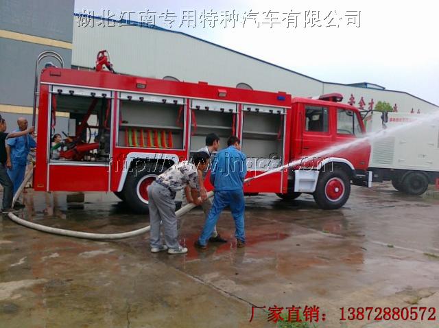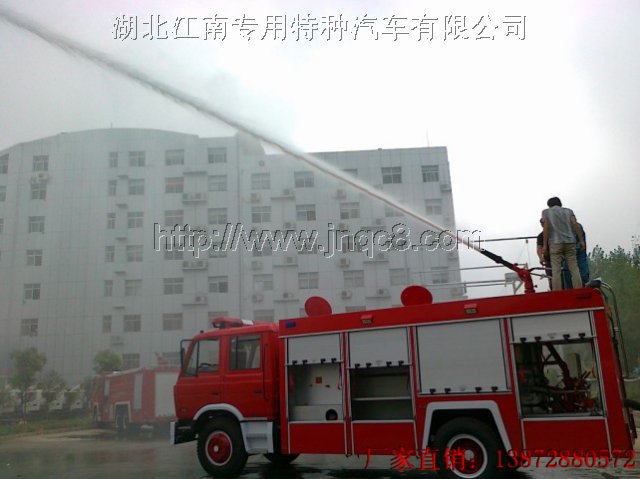 消防車|消防車廠家|五十鈴消防車|東風消防車|江南消防車:8月11日,重慶市軍工企業來湖北江南消防車廠考察東風153水罐消防車,該車采用東風EQ1141KJ底盤,康明斯190馬力發動機,罐體容積6立方,射程達50米以上。以下圖為消防車演示圖: