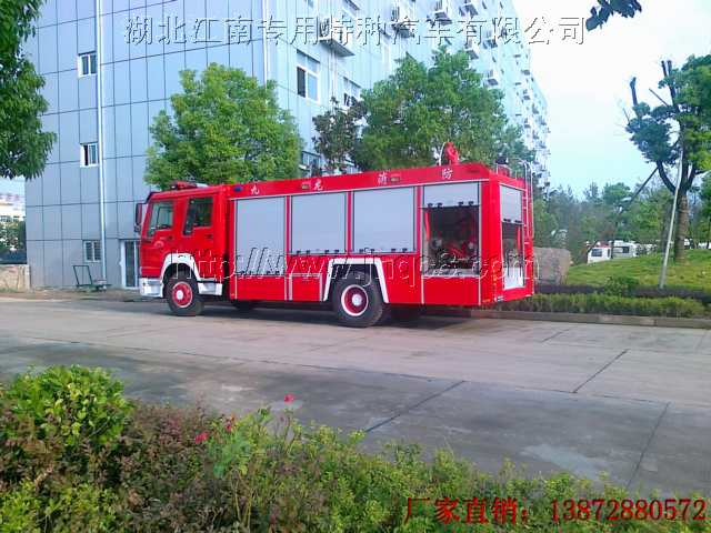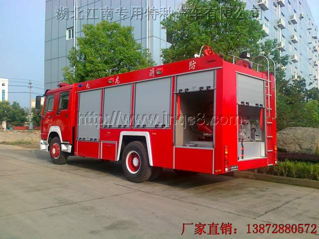 消防車|消防車廠家|8噸消防車|五十鈴消防車|江南消防車|江南專汽:中牟縣九龍鎮在湖北江南專用特種汽車有限公司購置的2臺8噸豪沃消防車今日發車。豪沃消防車是由中國重汽底盤改裝而成,罐體容積8立方,此車根據客戶要求加裝灑水裝置,可前沖后灑。