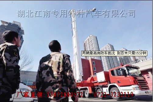 據沈陽晚報報道,沈陽消防隊購置一輛101米曲臂云梯消防車,這輛消防車身高臂長,車體長達16.7米,“手臂”全伸展開來高達99米,身寬達8米,體重62噸。如果它要伸展一下身軀,得要四個H型巨腿前來幫忙支撐,從地面升至高空僅用時15分鐘,伸展過程平緩,沒有明顯晃動。