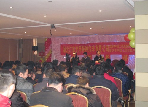 2010年2月7日,湖北江南專汽在隨州市艷陽天大酒店舉行每年一度的年度總結大會,參加會議的有公司董事長兼總經理甘子林同志、公司副總經理江光連同志、公司副總經理甘國躍同志、公司各辦公室主任及全體員工。